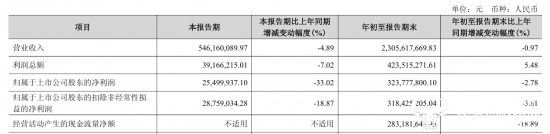 财报数据显示,金徽酒今年前三季度营业收入为23.06亿元,同比下滑0.97%,归母净利润为3.24亿元,同比下降2.78%,营收和利润双双下降,未能保持业绩的上涨趋势。