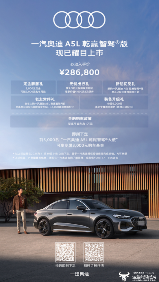 一汽奥迪A5L乾崑智驾®版上市,专属订车权益现已开启
