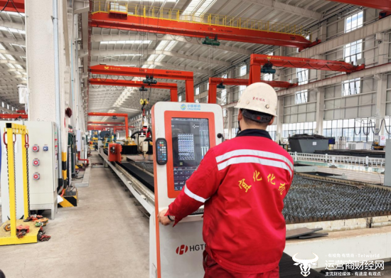 走进宜化化机万兆智能工厂,整洁有序的车间里不见传统化工机械制造的粉尘与嘈杂,压力容器重装车间内,6000吨数控压力机精准施压,焊接机器人自动跟踪焊缝作业;轻装车间内,60mm全自动卷板机有序完成板料对中、卷圆及合缝工序;钢构车间内,2台3万瓦激光切割机火力全开,年产能可达3.6万吨,是宜昌地区目前规模最大、智能化水平最高的钢结构制造基地。