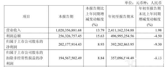 而第三季度单季度,天味食品营业收入为10.20亿元,同比增长13.79%,归母净利润2.02亿元,同比增长8.93%,营收和利润双双增长,表现良好。