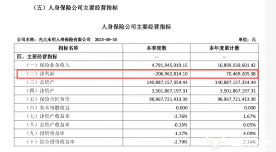 近期,运营商财经网在梳理时发现,光大永明人寿在今年三季度经营工作会议中提及,公司连续三个季度实现扭亏为盈。然而数据显示,其在今年第三季度又亏损了2.07亿元。具体情况究竟怎样?