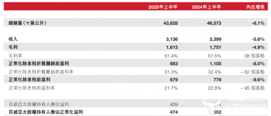 此外值得一提的是,在今年上半年,百威亚太营业收入同比下降7.74%至224.5亿元,被华润啤酒以0.83%的增速和239.4亿元的营收规模超越,失去行业第一的宝座。