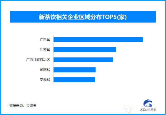 天眼查专业版数据显示,截至目前我国现存在业、存续状态的新茶饮相关企业超29.9万家。其中,2025年截至目前新增注册相关企业约2.7万余家。从区域分布来看,广东省、江苏省、广西壮族自治区新茶饮相关企业数量位居前列,三个省市数量总和超过9.8万家,占企业总数的32.9%。