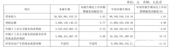 而伊利股份前三季度营业收入为903.40亿元,同比增长1.81%,归母净利润104.26亿元,同比下降4.07%,其中第三季度单季度公司营收为285.64亿元,归母净利润为32.26亿元,稳居行业第一。