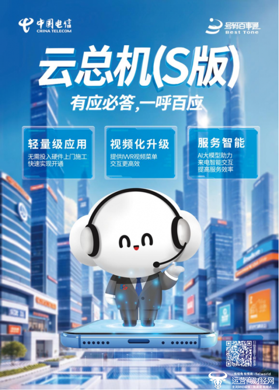 收官之战,效率制胜。中国电信云总机(S版)以智能化、高效化、人性化的核心优势,直击政企年终通讯痛点,从话务分流到信息传达,从日常沟通到应急响应,全流程赋能协同效率提升。无论是企业冲刺业绩的“加速跑”,还是政务机构保障民生的“持久战”,都能借助这一智能化通讯利器,打通沟通堵点、激活协同效能,助力各类组织以更顺畅的沟通、更高效的协同、更优质的服务,圆满收官年度征程,阔步迈向新的发展阶段。