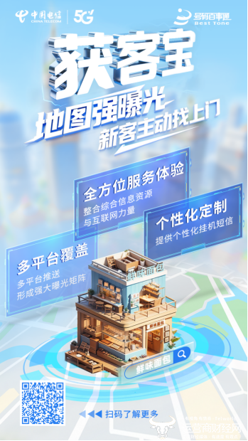 若说多平台覆盖是获客宝的“广度武器”,那一站式服务体验便是其深耕商户需求的“深度担当”。中小商户往往缺乏专业的营销团队,面对拉新、转化、留存的全流程运营常感力不从心。而获客宝整合中国电信的综合信息资源与互联网技术优势,将店铺维系、图片更新、视频海报制作、商品活动推广、挂机名片设置等功能融为一体,打造出“全链路智慧营销生态”。