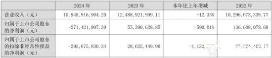 有趣的是,2024年总营收为109.5亿元,较2023年同比下降12.33%;归母净利润-2.71亿元,同比下降590.01%;扣非净利润-2.96亿元,同比下降1132.91%。可见2024年营收和净利润都呈现明显下滑,业绩处于亏损状态。但任锋的薪资却有所增长,相较于2023年95万元的年薪,上涨22.5万元,涨幅达23.7%。