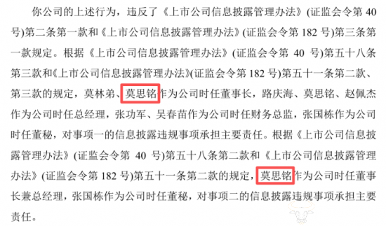 不过,莫思铭的履职过程并非一帆风顺。2024年12月,江苏证监局曾对其采取出具警示函的监管措施。警示函内容表明,因公司存在“定期报告财务信息披露不准确且首次前期会计差错更正披露不完整”,以及“未披露与关联方的非经营性资金往来情况”的问题,莫思铭作为公司时任董事长对两项违规事项均承担主要责任。
