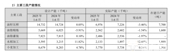 但公司的产能利用率却处于较低水平。2025年半年报显示,金龙鱼五大主要工段产能中,只有小麦加工产能利用率超过了60%,其余均在60%以下。