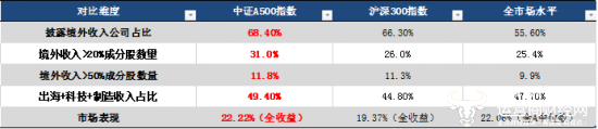 注:数据来源wind,截至25/12/01,境外收入数据来源于企业2025年半年报;科技指中证一级行业中的信息技术、通信服务,制造指中信一级行业的工业,出海指其他行业的境外收入