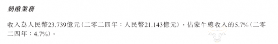 财报数据显示,伊利股份奶酪业务所在的奶粉及奶制品板块前三季度营收为242.61亿元,但并未单独披露奶酪业务的收入,而在三季度业绩说明会上,伊利集团表示,公司预计伊利奶酪业务全年也会实现双位数增长。