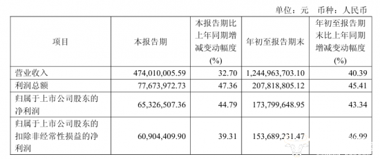 而第三季度单季度公司营业收入达4.74亿元,同比增长32.70%,归母净利润同比增长44.79%至6532.65万元,保持了业绩的增长态势。