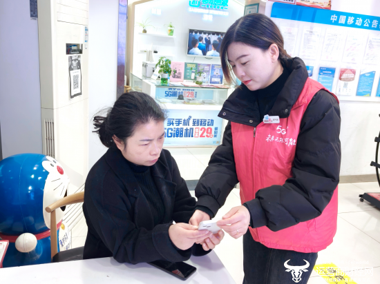 (移动工作人员向用户介绍“英山林碳”小程序)