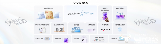 为保证强劲性能稳定释放,S50系列全系配备大面积高性能导热石墨与高效 VC 液冷散热,均热板面积最高达 4200mm²,在高负载运行时有效控制机身温度。续航方面,vivo S50 全系搭载 6500mAh 蓝海电池,在轻薄机身与长续航之间取得平衡;vivo S50 Pro mini 在小尺寸机身内同样塞入大电池,并支持 40W 无线闪充及无线反向充电,为无线补能和多设备协同提供更多选择。