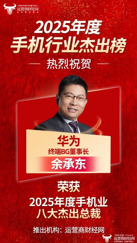 近日,运营商财经网独家打造了一年一度的“2025年度手机业八大杰出总裁”,此榜单在继承往年整体基调的同时,融入了更加多元的考量因素,表现形式也更加丰富多彩。