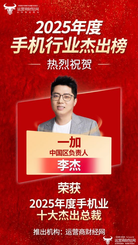 其中,一加 中国区负责人 李杰上榜“2025年度手机业十大杰出总裁”。