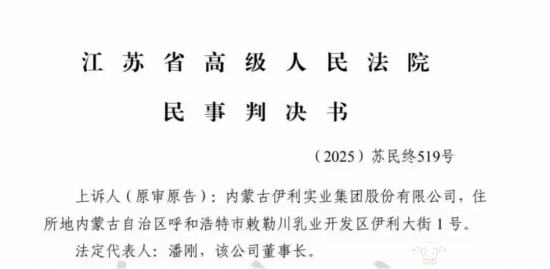 2025年10月,江苏高院就伊利诉蒙牛不正当竞争案作出终审判决,认定蒙牛“精选牧场”包装与伊利“金典”高度近似构成侵权,判令其赔偿经济损失及维权开支共计500万元。