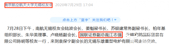 江志强出生于1970年5月,据悉他拥有工商管理硕士学位。不过运营商财经网在梳理时发现,在2020年7月南京航空航天大学(简称南航)无锡校友会发布的一篇文章中,江志强曾以时任国联证券副总裁的身份出现。