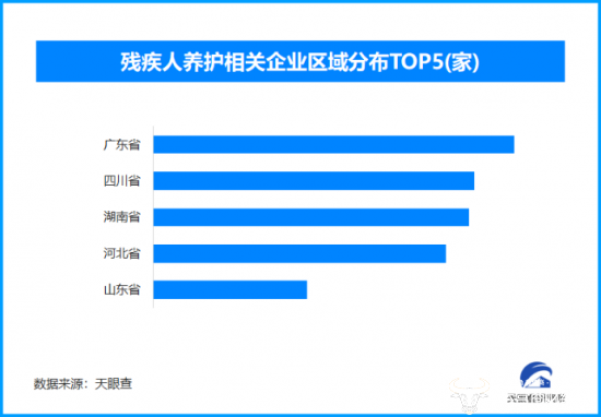 天眼查专业版数据显示,截至目前我国现存在业、存续状态的残疾人养护相关企业超8900余家。从区域分布来看,广东省、四川省、湖南省、河北省残疾人养护相关企业数量位居前列,四个省市数量总和超过4800家,占企业总数的53.8%。