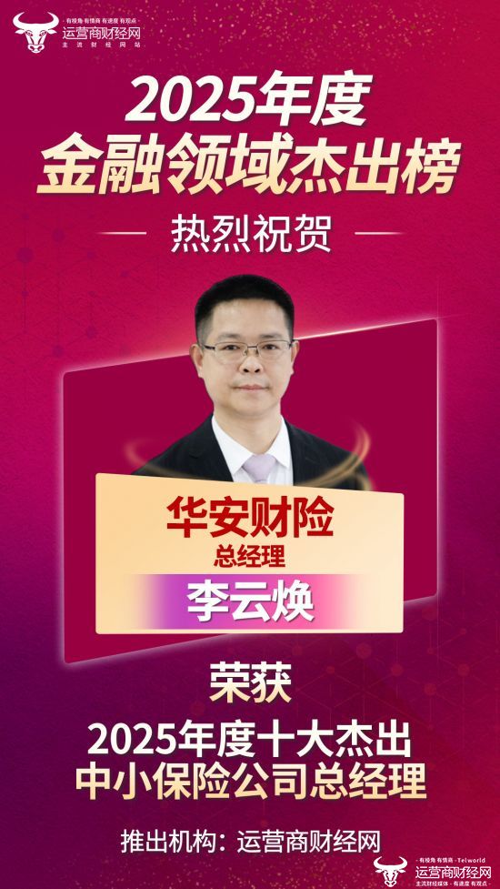 日前,国内知名财经媒体——运营商财经网独家打造的“2025年度十大杰出中小保险公司总经理榜”具体名单已经正式公布,来自华安财险的总经理李云焕提名入围!