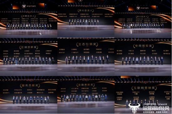 为凝聚合作伙伴共创未来的信心与决心,福田汽车常务副总经理鹿政华主持了核心投资人和战略投资人授牌仪式,现场为45位长期与公司同频共振的战略及核心投资人授牌,他们将获得"专属政策支持、专业人才培养、战略协同共创"等全方位赋能。同时,大会还对全年表现优异的经销商分别授予"区域深耕奖"、"生态引领奖"、“专用领军奖”、"服务贡献奖"、“金融领航奖”、“互联网营销奖”荣誉。