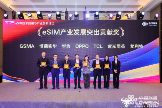 颁奖环节中对为产业发展作出突出贡献的合作伙伴予以表彰,进一步凝聚起产业链协同创新的共识。展区内,中国联通以十年发展时间轴系统梳理了在 eSIM 领域的深耕历程,同时集中展示 eSIM 可穿戴设备、物联网终端、eSIM 平板、eSIM 手机四大全品类终端产品,全面覆盖消费电子与行业应用场景,直观呈现eSIM的技术优势。