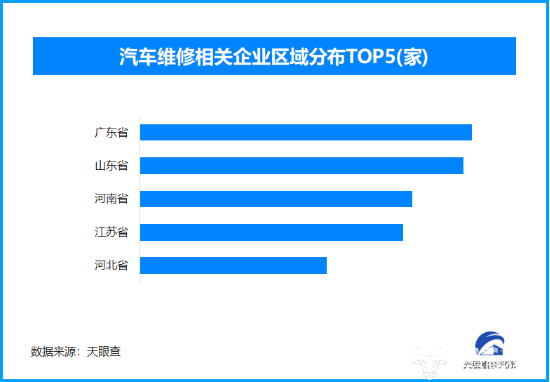 天眼查专业版工商信息数据显示,截至目前我国现存在业、存续状态的汽车维修相关企业超69.2万家。从区域分布来看,广东省、山东省、河南省、江苏省汽车维修相关企业数量位居前列,分别拥有超6.3万余家、6.1万余家、5.1万余家和5万余家。