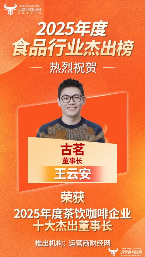 近日,运营商财经网正式推出“2025年度茶饮咖啡十大杰出董事长”榜单,其中古茗董事长王云安成功入围!