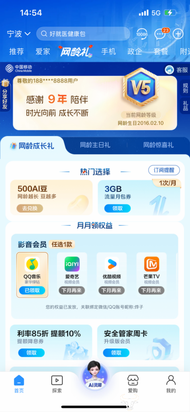 网龄越长福利越香!至高领3GB流量月包与500AI豆,每月还能从爱奇艺、优酷、腾讯视频等热门会员里免费五选一,刷剧听歌不用花钱。每日签到也有好礼,攒心愿金能兑换至高5元话费,连续签到还能抽高额大奖,“小羊毛”积少成多超满足!