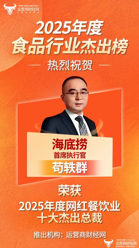 近日,由运营商财经网独家编制的“2025年度网红餐饮业十大杰出总裁”名单正式揭晓,海底捞首席执行官苟轶群成功入选!