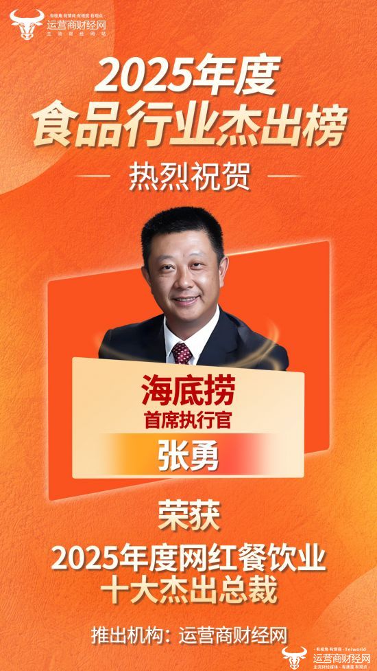 近日,由运营商财经网独家编制的“2025年度网红餐饮业十大杰出总裁”名单正式揭晓,海底捞首席执行官张勇成功入选!