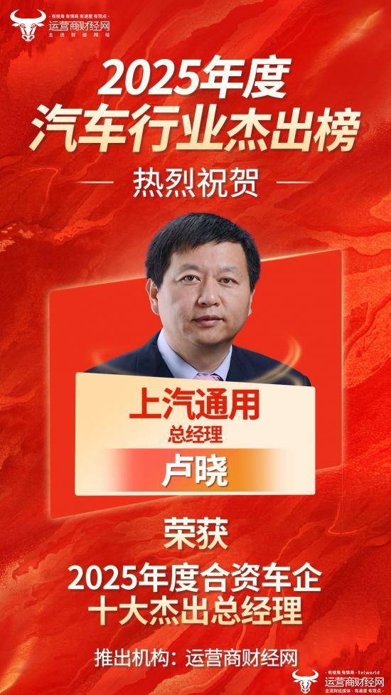 作为汽车行业的敏锐洞察者,运营商财经网独家打造了“2025年度汽车业杰出高管榜”系列榜单,旨在对过去一年表现突出的车企及其领导人表示肯定。日前,运营商财经网正式公布了该系列榜单中的第一个,即“2025年度合资车企十大杰出总经理”,其中,上汽通用总经理卢晓榜上有名!