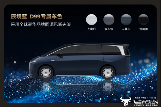 在色彩设计上,零跑D99坚持“自然共生”理念,雕琢出五款意境悠远的豪华外观色,赋予车辆独特的视觉灵魂。其中,“辰境蓝”为零跑D99的专属色,静止时呈现沉稳克制的绅士气质,驰骋在阳光下则会唤醒细腻珠光,折射出年轻灵动的气息。为呈现这种高级质感,零跑选用顶级豪华品牌同款的巴斯夫车漆,让颜色更通透、层次更丰富,且光泽持久不易失色。此外,光电白的纯粹冷峻、液态银的温暖优雅、天幕灰的深邃莫测与金属黑的低调不凡,五款自然灵感色分别对应不同的审美志趣,让每一台零跑D99都能成为用户个性与气质的延伸。