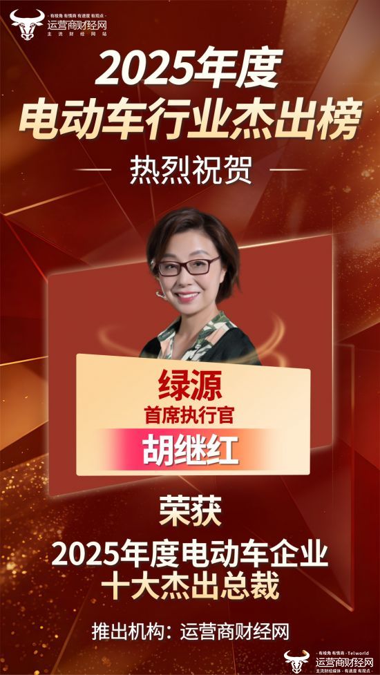近日,备受瞩目的“2025年度电动车十大杰出总裁”已经正式揭晓了,绿源首席执行官胡继红成功入选。此榜单评选基于企业业绩、高管业内知名度等多种因素,力求公正客观。
