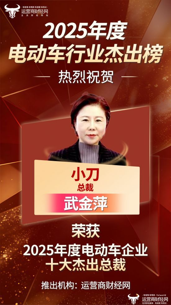 其中,小刀总裁武金萍被评为“2025年度电动车十大杰出总裁”。武金萍执掌小刀的时间长达十多年,这期间她带领公司取得一个又一个优秀的成绩。