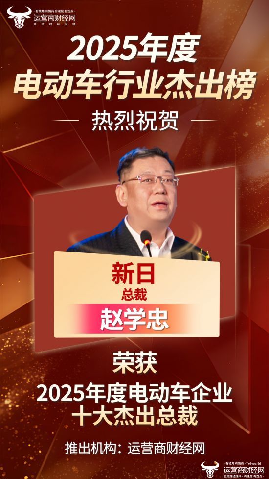 近期,国内知名财经媒体——运营商财经网独家打造了“2025年度电动车十大杰出总裁”。现具体上榜名单已经确定,新日总裁赵学忠成功入选。