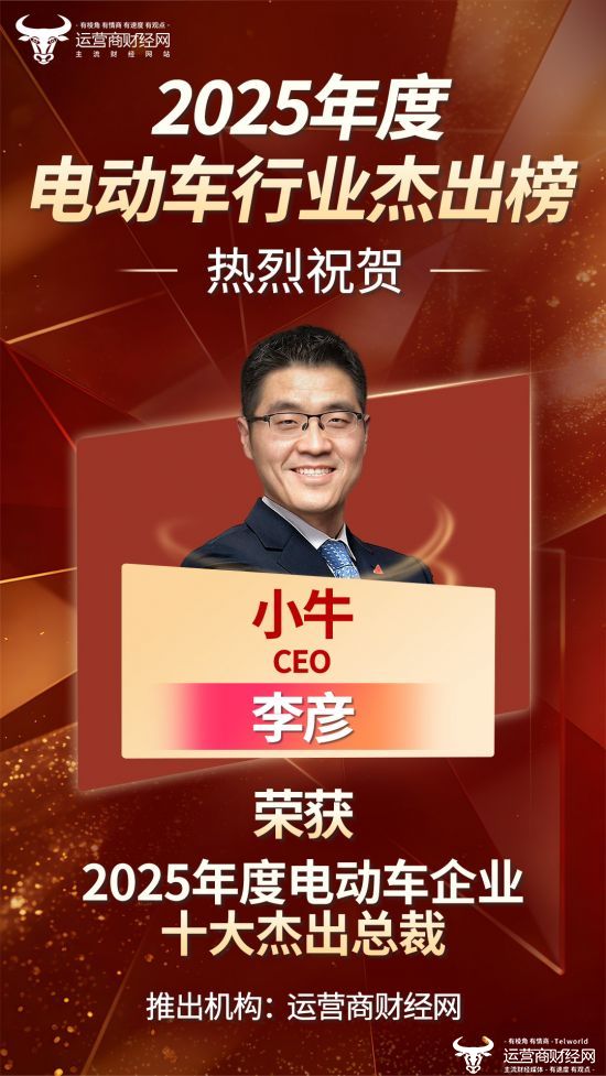 近日,由知名财经媒体运营商财经网推出的 “2025年度电动车十大杰出总裁”已正式确定,小牛CEO李彦榜上有名。