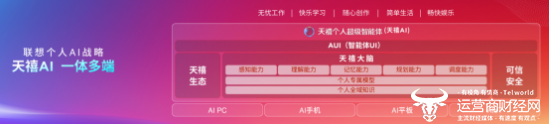 作为联想“一体多端”战略的核心,一体即天禧个人超级智能体,简称“天禧AI”,它由AUI交互、天禧大脑、天禧生态、可信安全平台四大核心支柱构成。它不只是一个简单的软件,而是拥有感知、理解、记忆、规划、调度五大核心能力的智慧中枢,旨在成为最懂用户的个人AI。