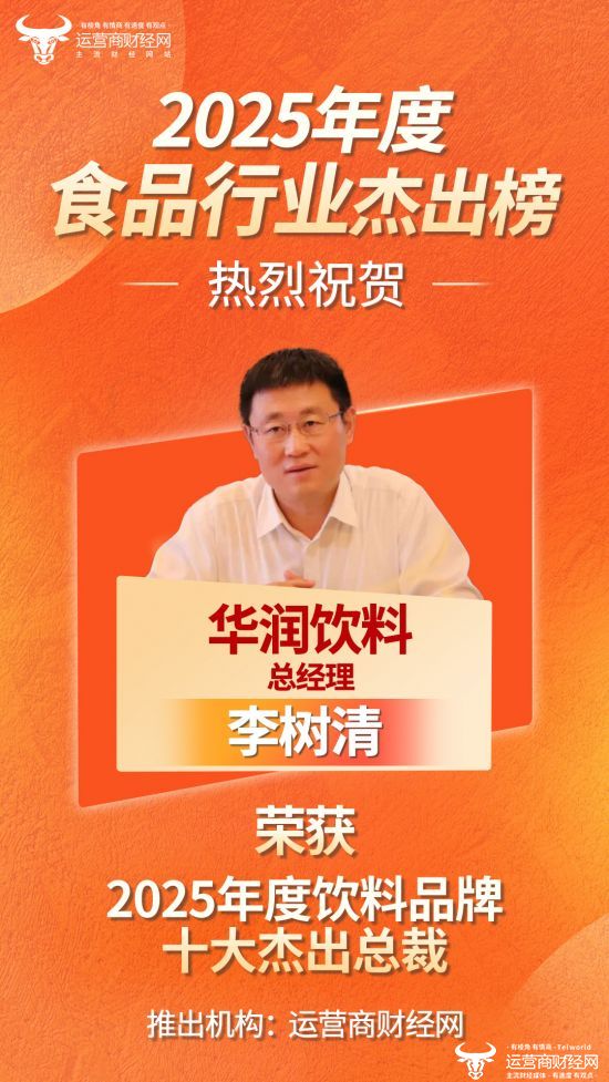近日,运营商财经网正式推出“2025年度饮料品牌十大杰出总裁”榜单,华润饮料总裁李树清榜上有名,可喜可贺!
