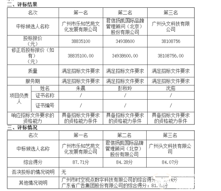 值得一提的是,广州市时空视点数字科技有限公司和广东省广告集团股份有限公司虽然参与竞标,但是分别以81.74分、81.48分的综合得分遗憾出局,这两家公司也是汽车公关领域颇具名气的企业,此次未能中标折射出本次竞争的残酷性。
