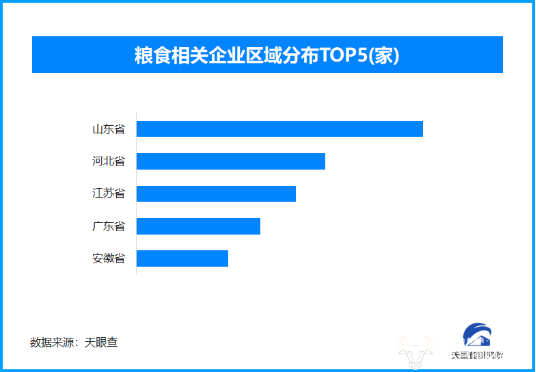天眼查专业版数据显示,截至目前我国现存在业、存续状态的粮食相关企业超22.3万家。从区域分布来看,山东省、河北省、江苏省粮食相关企业数量位居前列,三个省市数量总和超过8.8万余家,占企业总数的39.7%。