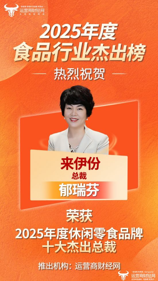 近日,由国内知名财经网运营商财经网独家编制的“2025年度休闲零食品牌十大杰出总裁”名单正式揭晓,来伊份总裁郁瑞芬成功入选!