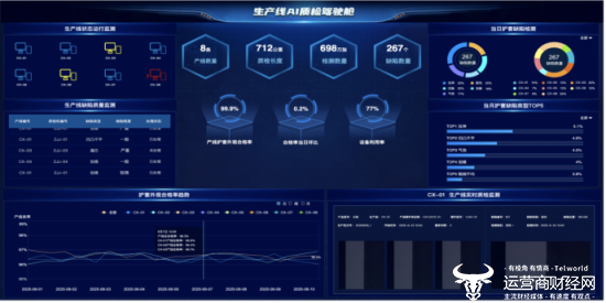 云端复检平台为线缆厂商管理部门提供了全局视角的生产线数据大屏(驾驶舱),可全局了解产线情况及生产状态,及时发现产线关键缺陷信息,支出支持按日、周、月维度查看护套合格率变化趋势,识别质量波动规律。