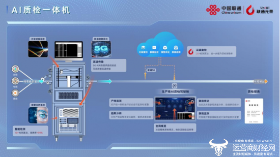 联通数智研发的元景“AI线缆质检一体机”,融合其领先的“大小模型”与5G-A技术,不仅精准识别划痕、鼓包、凹坑等十余种复杂瑕疵,更将检验数据转化为工艺优化洞察,从根源守护质量生命线。