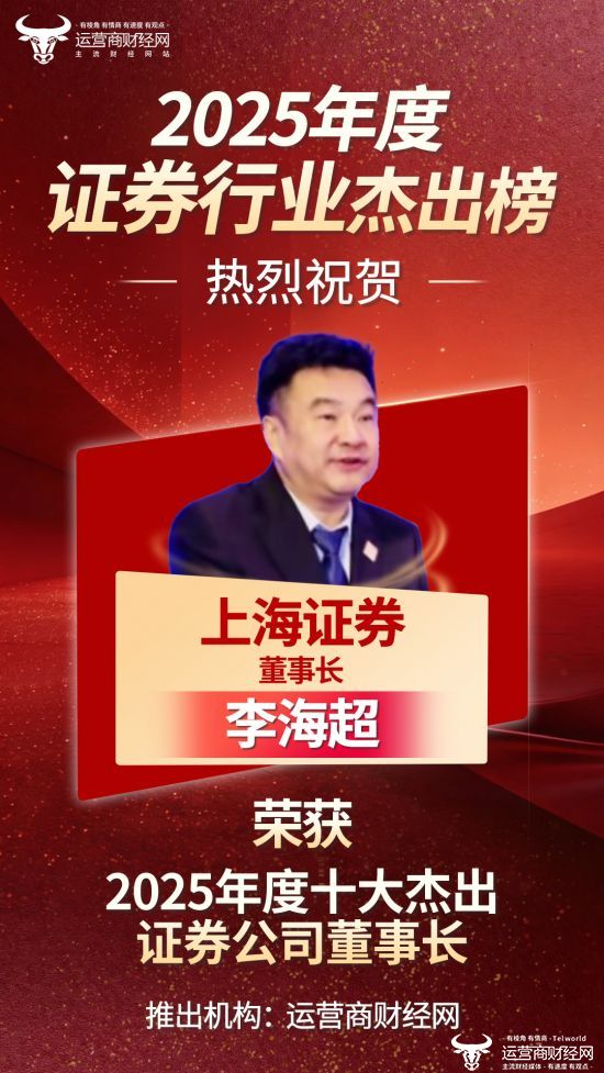国内知名财经媒体——运营商财经网独家打造的“2025年度十大杰出证券公司董事长榜”名单,在日前正式出炉!上海证券董事长李海超提名入围!