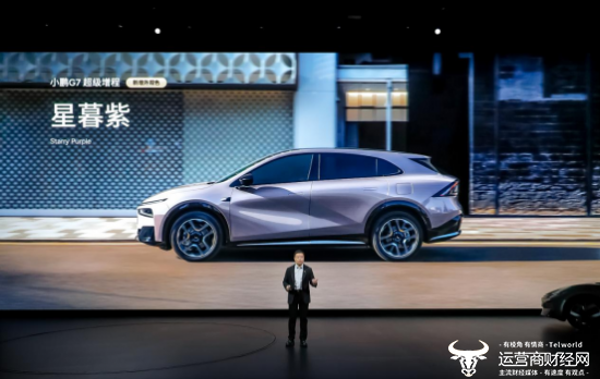 小鹏G7超级增程提供五种外观配色:星昼灰、新月银、星云白、暗夜黑,以及限时推出的星暮紫。这款星暮紫配色在光线变幻下有不同的视觉效果,阳光下通透柔和,暗光中深邃沉稳,科技感十足,回头率拉满。
