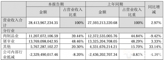 而针对公司肉制品业的发展,万宏伟提到其顺应趋势发展,“实现多点突破”,但在今年上半年,双汇肉制品业营业收入为112.07亿元,相较于去年同期的123.73亿元,同比下降了9.42%,是公司为数不多的营收减少的产品,营收占比也由44.84%下降至39.44%。