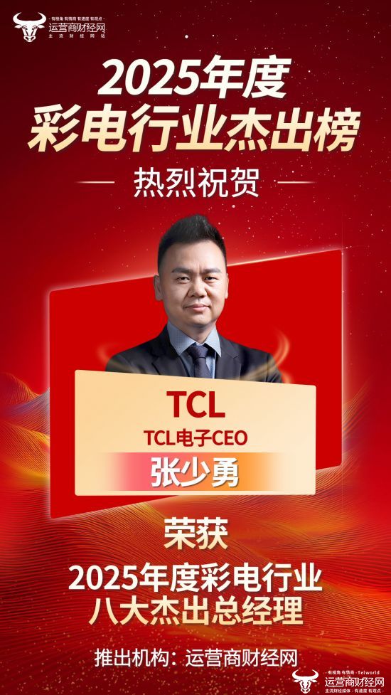 近日,由运营商财经网独家打造的“2025年度彩电行业八大杰出总经理”名单已经确定。经过多方考量,TCL电子CEO张少勇凭借优秀的表现荣获此奖。