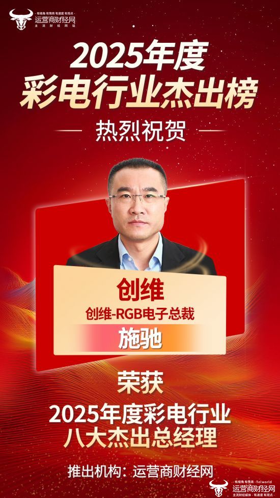 近日,备受瞩目的“2025年度彩电行业八大杰出总经理”上榜名单正式公布。其中,热烈祝贺创维-RGB电子总裁施驰凭借优秀的表现,荣获此奖。