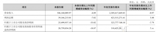 但从单季度来看,第三季度金徽酒营业收入为5.46亿元,同比下降4.89%,而归母净利润同比下滑33.02%至2549.99万元,降幅超三成,且创下上市以来单季最大跌幅,波动较大。